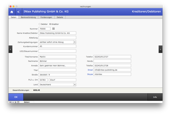 INtex Rechnungseingangsbuch kümmert sich um Eingangsrechnungen. Die Shareware erfasst Rechnungen von Lieferanten, Dienstleistern, Behörden, freien Mitarbeitern etc. Dabei lassen sich neben Rechnungsbetrag und Rechnungsdatum, Zahlungsziel sowie weitere selbst definierbare Angaben speichern.